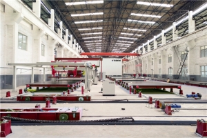PC構件生產流水線采用現(xiàn)代工業(yè)做法,工作模臺流轉作業(yè),實現(xiàn)住宅預制構件批量生產,將傳統(tǒng)現(xiàn)澆工地大量立體分散的工作,轉移至工廠,大幅提高了功效,同時大量節(jié)省人工。